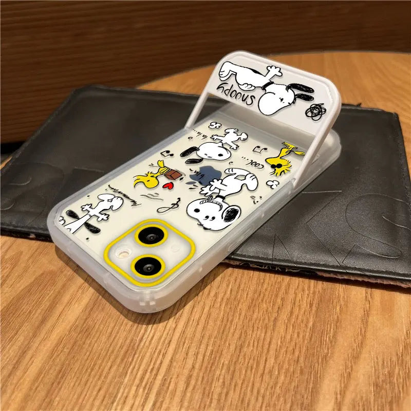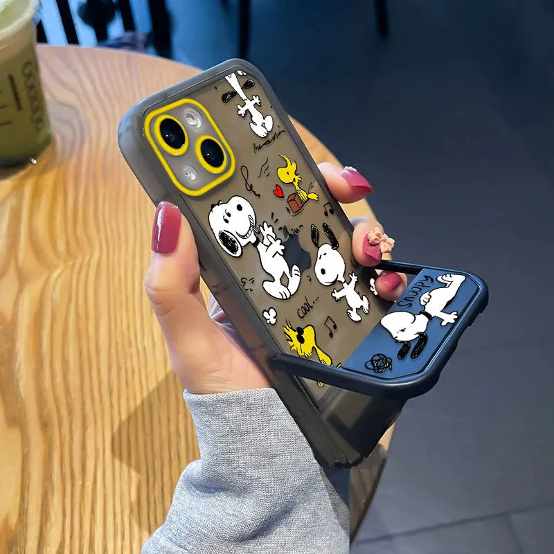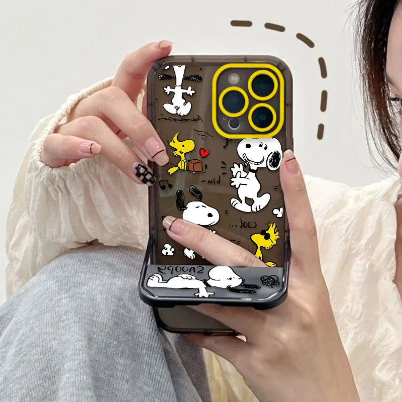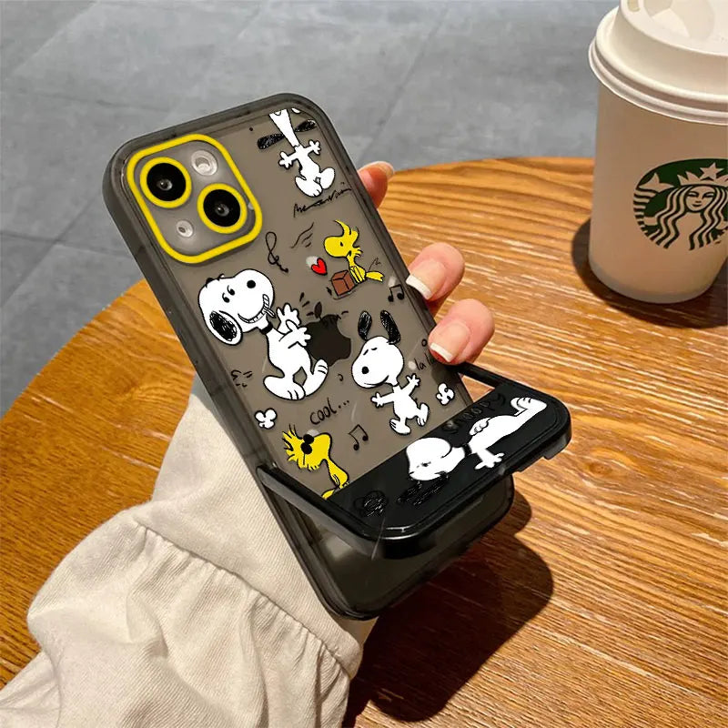 Snoopy Phone Case with Stand – Cute Transparent Cover for iPhone 16 15 14 13 12 11 & More