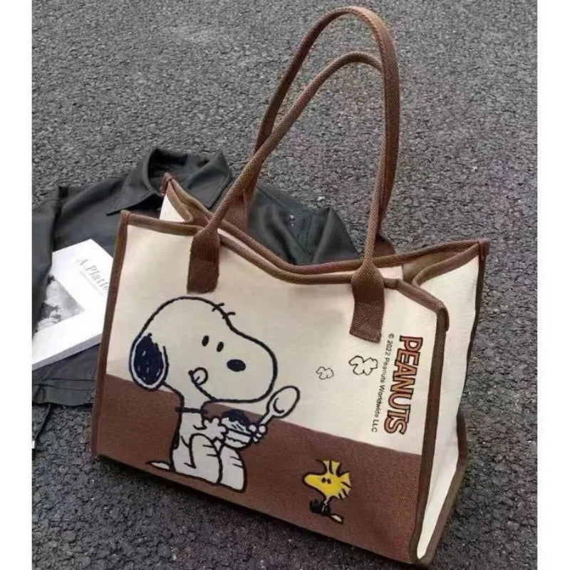 Cute Large Capacity Canvas Bag Kawaii Cartoon Character Snoopy Casual Printed Handbag Versatile Storage Bag Girl Birthday Gift