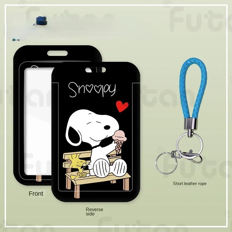 Snoopy Card Cases Hanging Neck Strap Holder Campus Meal Bus Kids ID Card Cover Hold