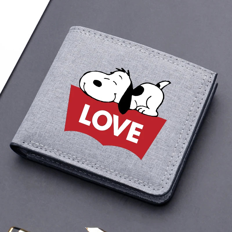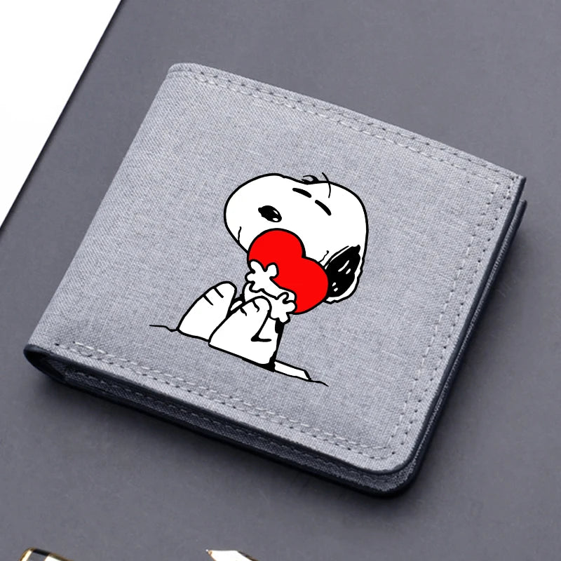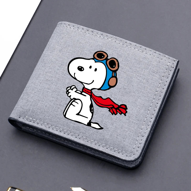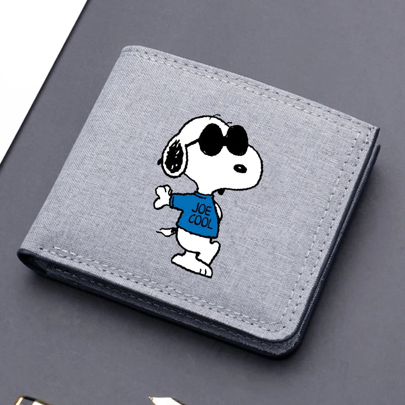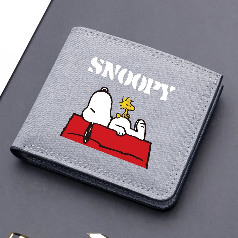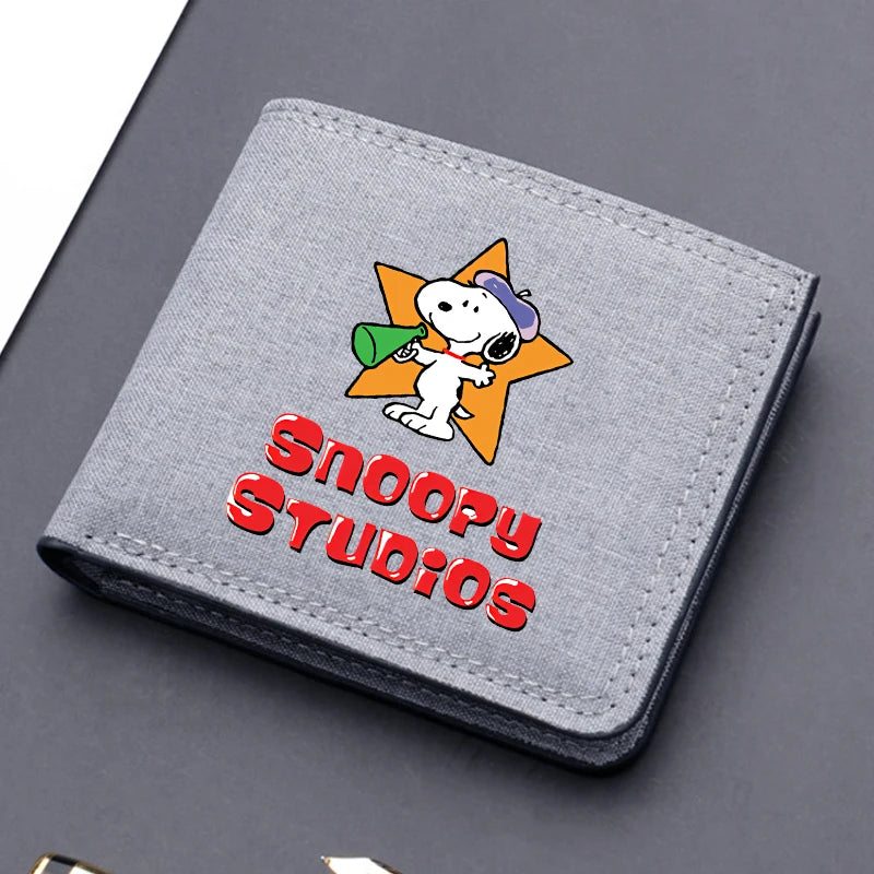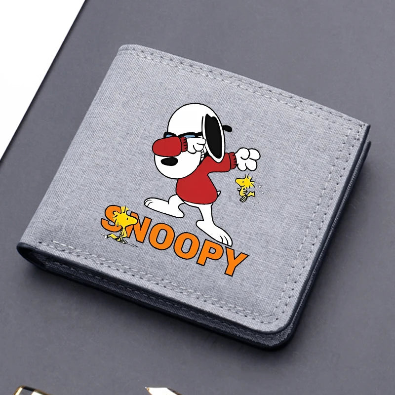 Snoopy Canvas Wallet Short Folding Purse Cute Boy Card Holder Fashion Kids Coin Photo Case